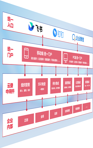 对协作平台提供支持服务,,,支持企业应用与协作平台对接,,包含组织同步、、消息集成、、待办集成等。。支持目前主流的协作平台:钉钉、、、企微和飞书。。。。